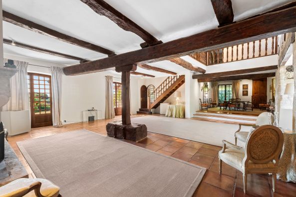 An authentic and refined lifestyle : a spacious living room with a beautiful fireplace and generous volumes; a welcoming kitchen, also featuring its own fireplace. The renovation has been carried out with great care, enhancing noble materials and preserving the soul of the place. A dedicated wellness area with sauna and heated pool, ideal for year-round relaxation. A natural spring with ornamental basins brings serenity to the landscaped garden.